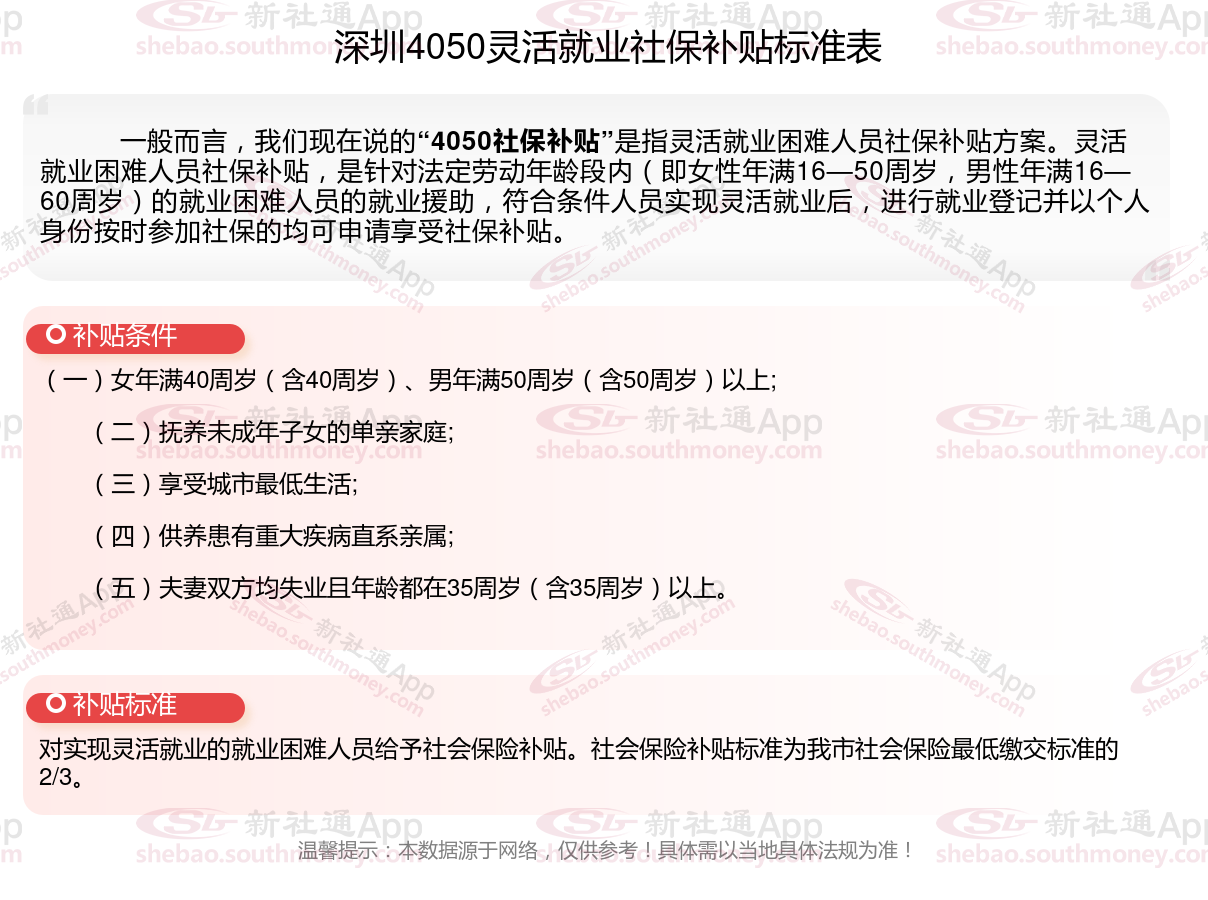 一、深圳灵活就业人员4050补贴最新标准2025年,深圳4050灵活就业人员养老补贴一年可以有多少钱?