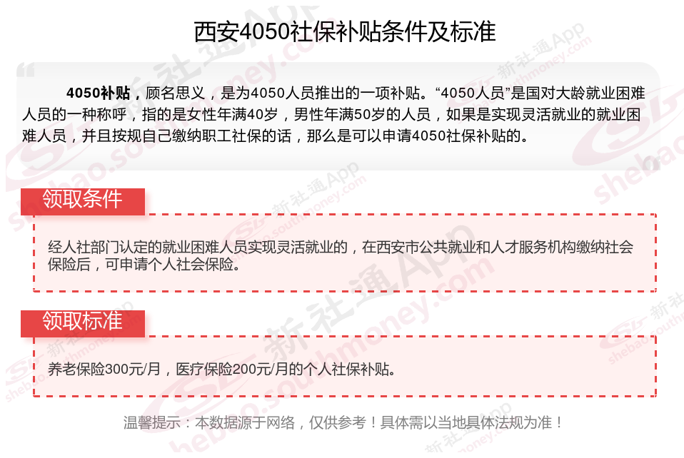 一、2025年西安4050社保补贴标准及条件是多少?