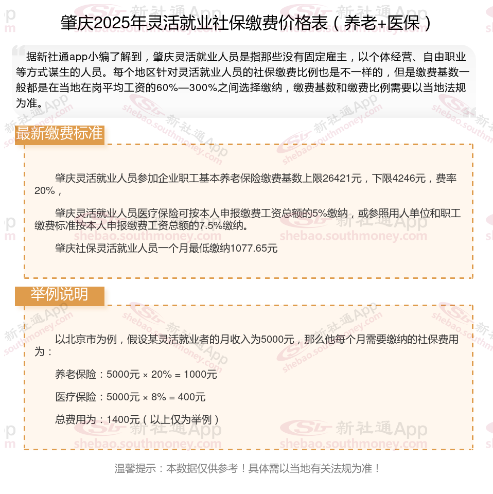 2025灵活就业社保缴费标准的调整,既体现了法规的连续性,又适应了经济社会发展的要求。灵活就业人员应根据自身情况,合理选择缴费基数和缴费比例,确保自身权益得到充分保证。那么2025年肇庆灵活就业人员社保需要交多少钱?下面随新社通小编一起来看看。