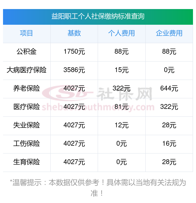 2025年益阳社保缴费多少钱?下表是2024-2025年益阳社保费用明细参考,新社通app-社保缴费查询工具提供的最新数据如下: