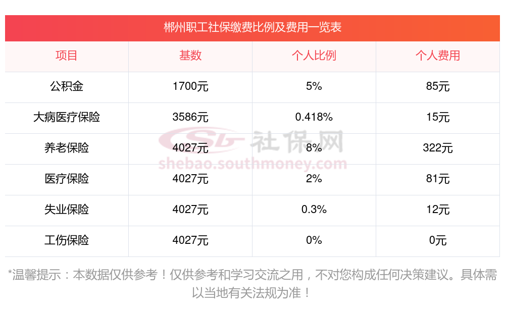 郴州社保个人缴费比例是多少?和社保网小编一起来看看2024-2025年郴州最低社保费用明细参考,新社通app-社保缴费查询工具提供的最新数据如下: