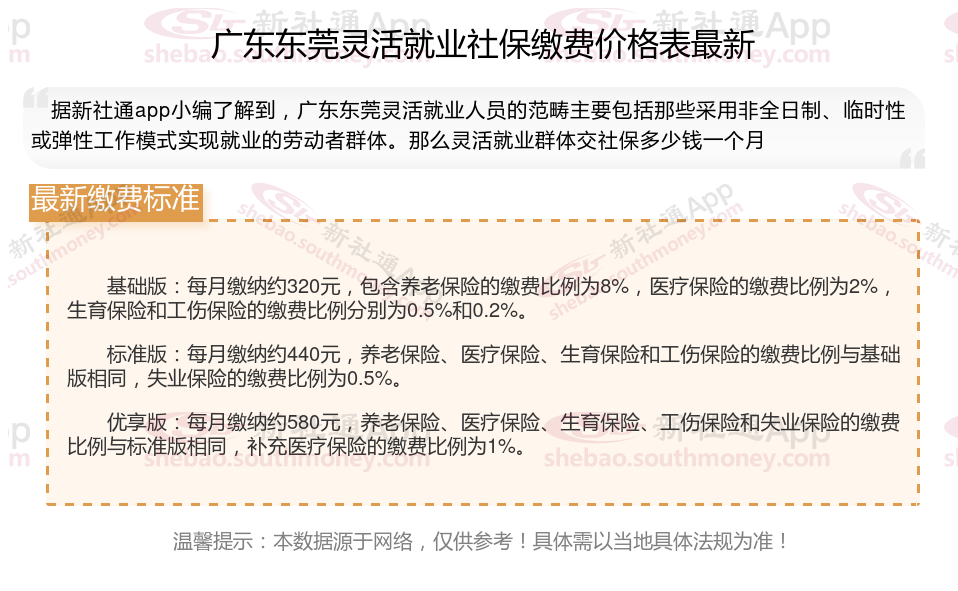 什么是灵活就业社保?简单讲灵活就业人员购买的社保就叫灵活就业社保。灵活就业人员是指以非全日制、临时性和弹性工作等灵活形式就业的人员。那么2025年广东东莞灵活就业社保缴费基数是多少?要怎么缴费?15年后能拿到多少钱?接下来随新社通APP小编一起了解具体详情吧。