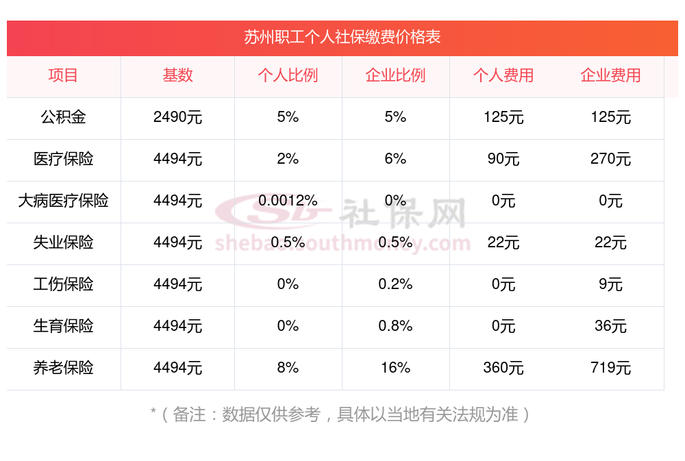 2025年苏州社保缴费多少钱?下表是2024-2025年苏州社保费用明细参考,新社通app-社保缴费查询工具提供的最新数据如下: