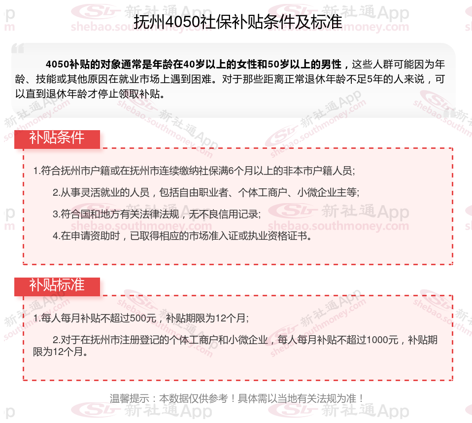 一、抚州4050社保补贴标准及条件2025年最新消息
