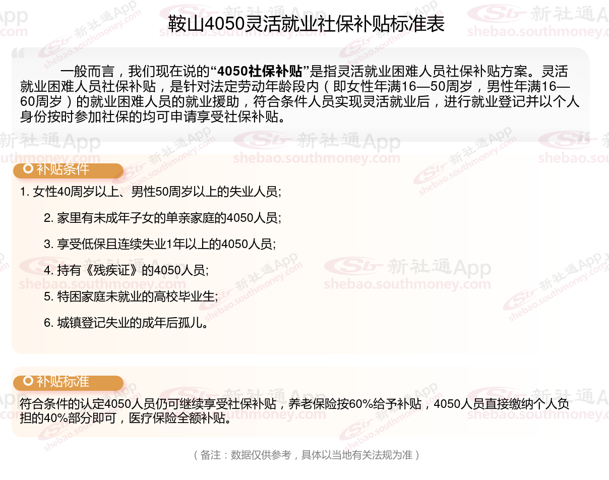 一、2023-2024年鞍山4050社保补贴标准及条件,最新如下