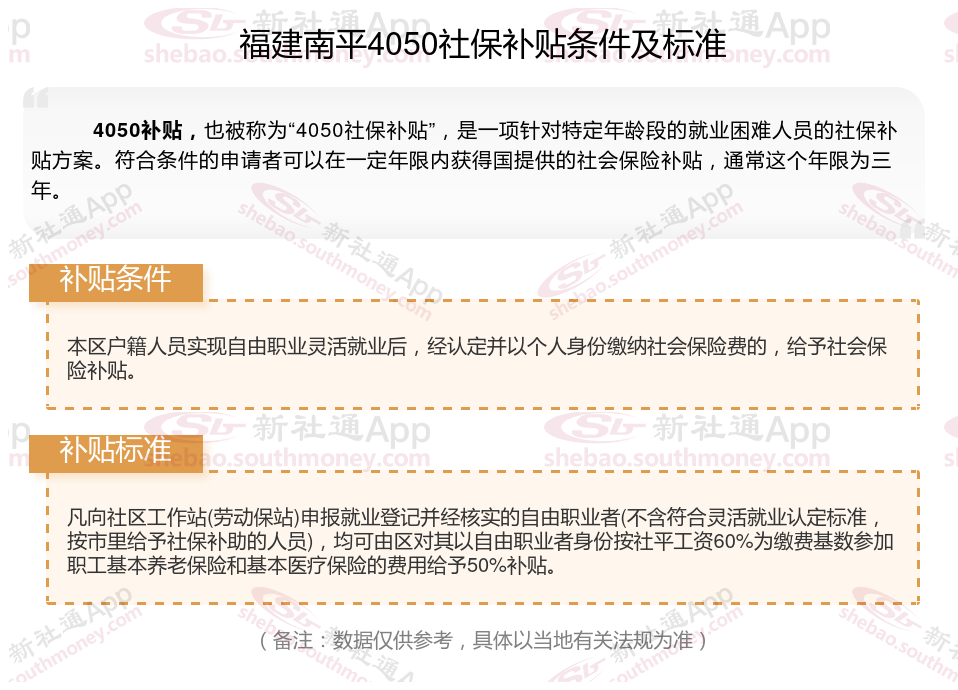 一、2025年福建南平灵活就业4050社保补贴标准及条件是什么