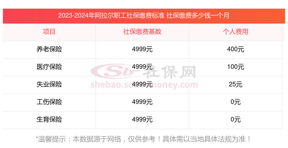 2025年阿拉尔5险缴费标准是多少,2025年阿拉尔社保缴费多少钱?下表是2025年阿拉尔社保费用明细参考,新社通app-社保缴费查询工具提供的最新数据如下: