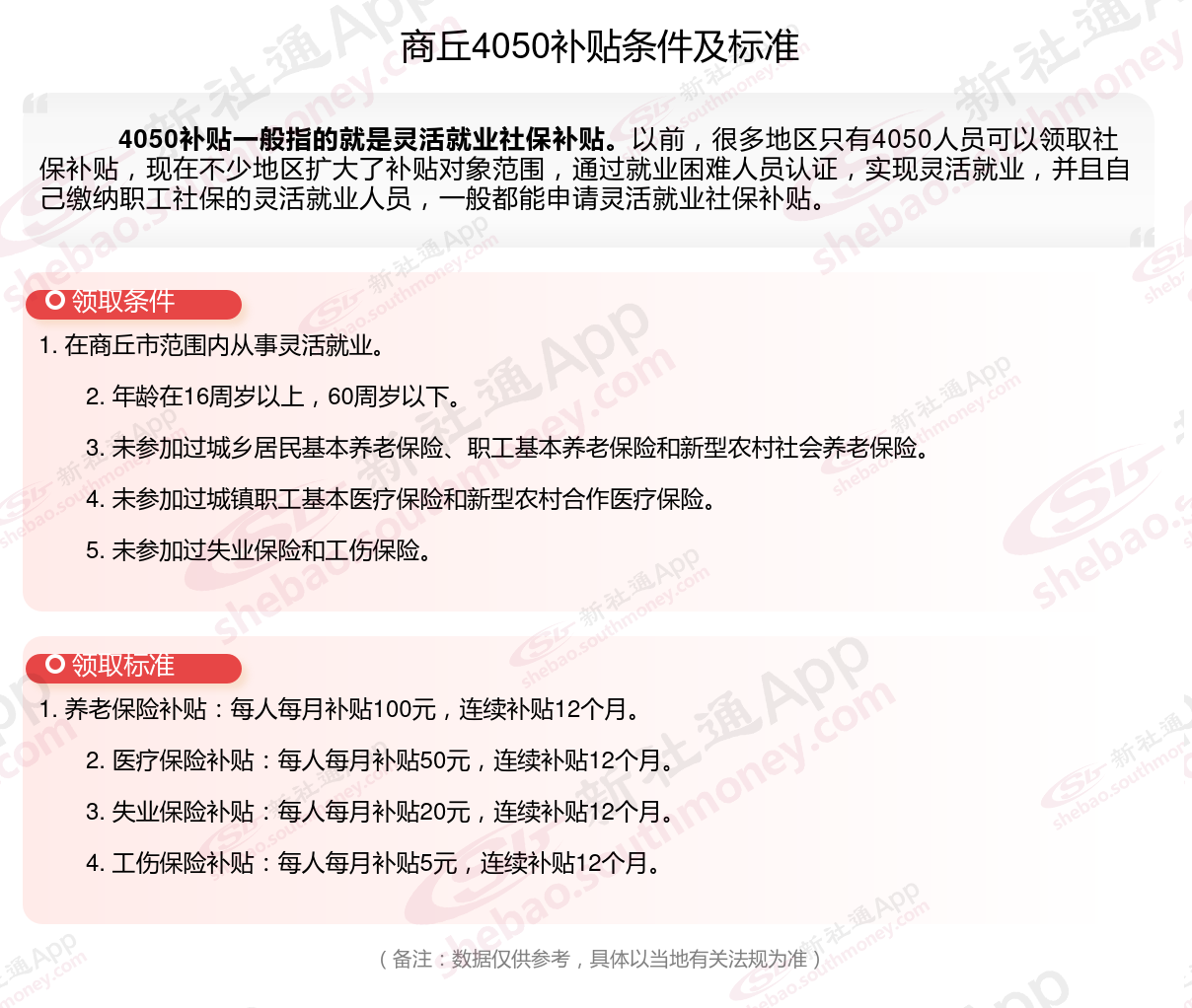 二、2025年商丘4050社保补贴标准是多少,最新4050社保补贴领取条件来了