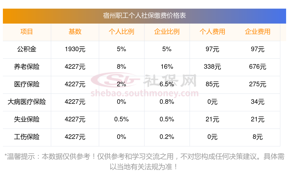 2025年宿州社保缴费标准是多少,农村户口一共交了多少年社保 下表是2025年宿州社保费用明细参考,新社通app-社保缴费查询工具提供的最新数据如下: