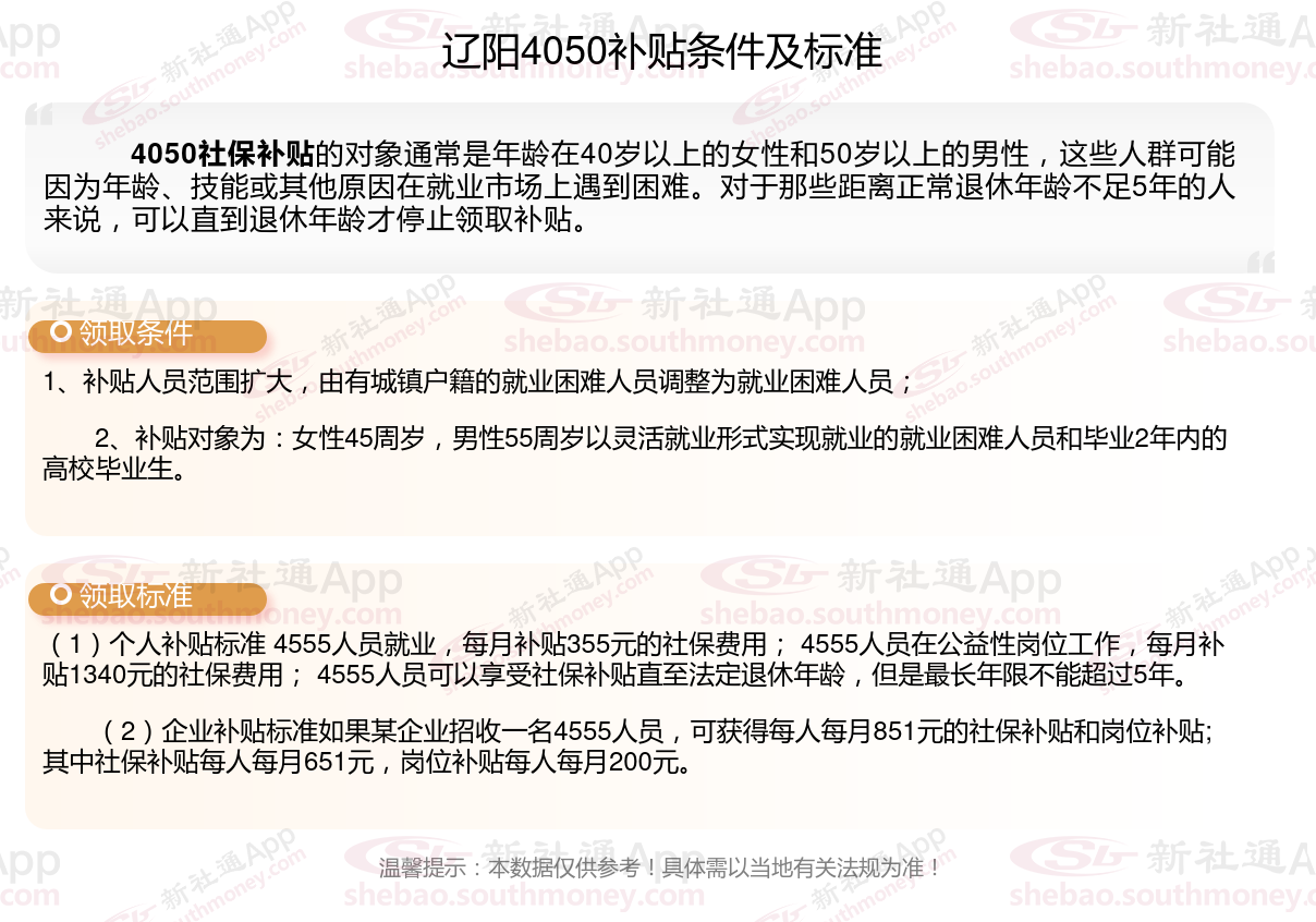 一、2025年辽阳4050社保补贴标准及条件是多少?