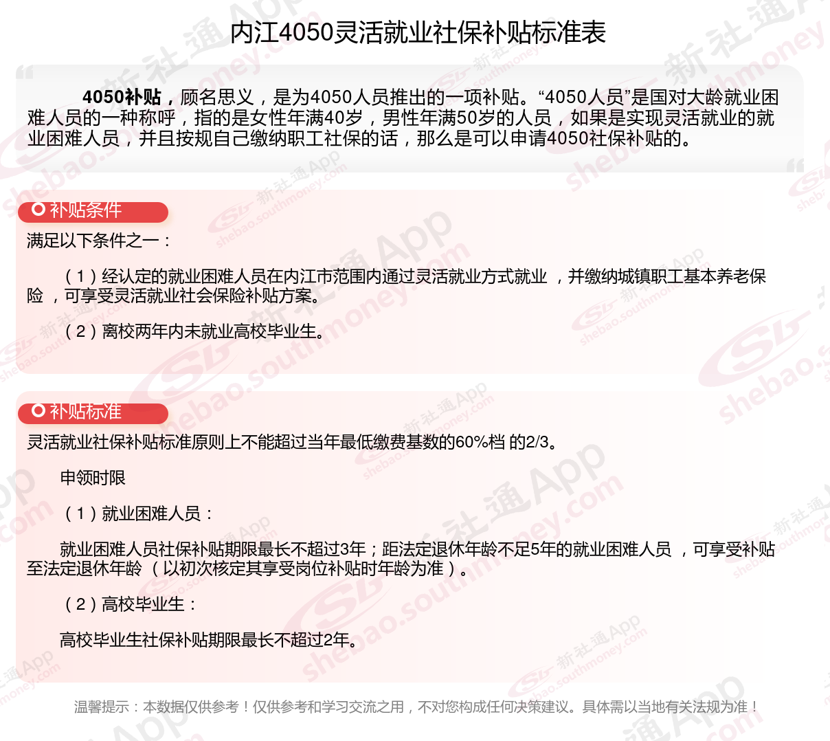 二、2025年内江4050社保补贴标准及条件,最新如下: