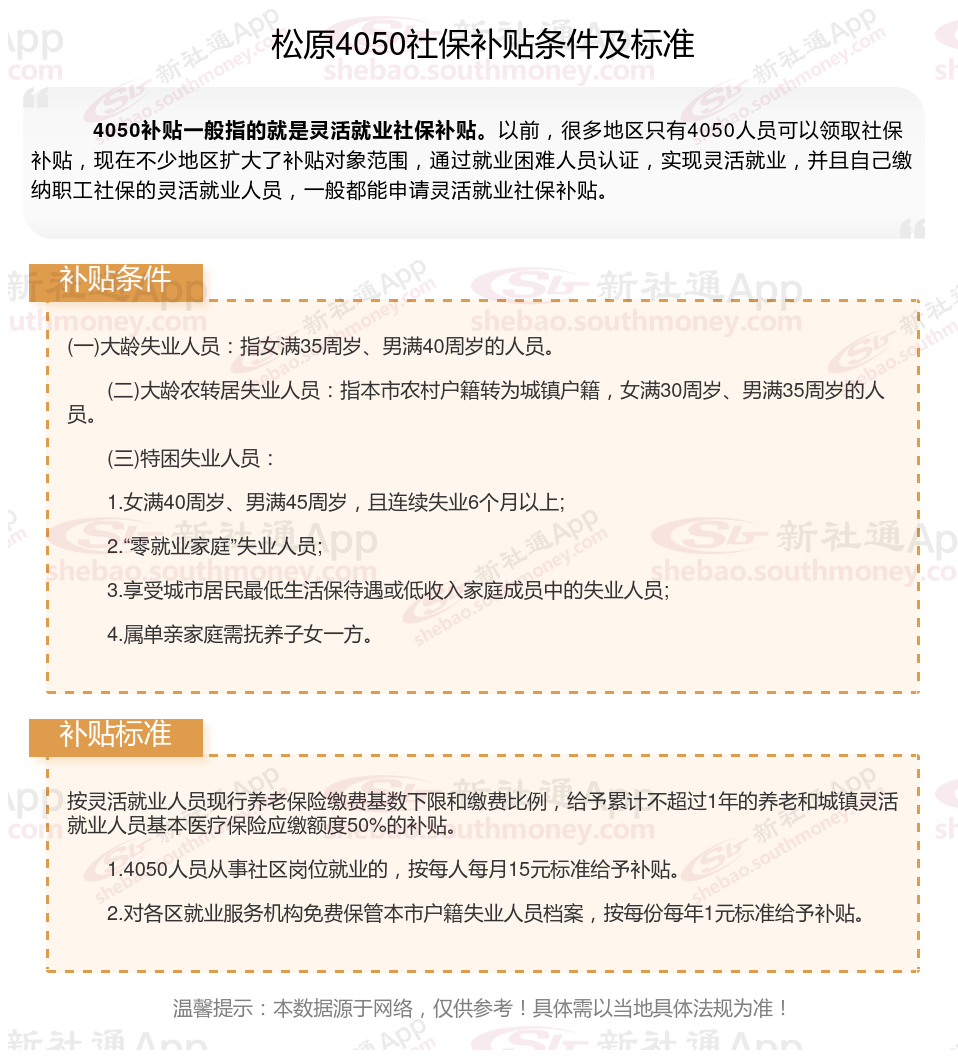 二、2025年松原4050社保补贴标准及条件是什么?