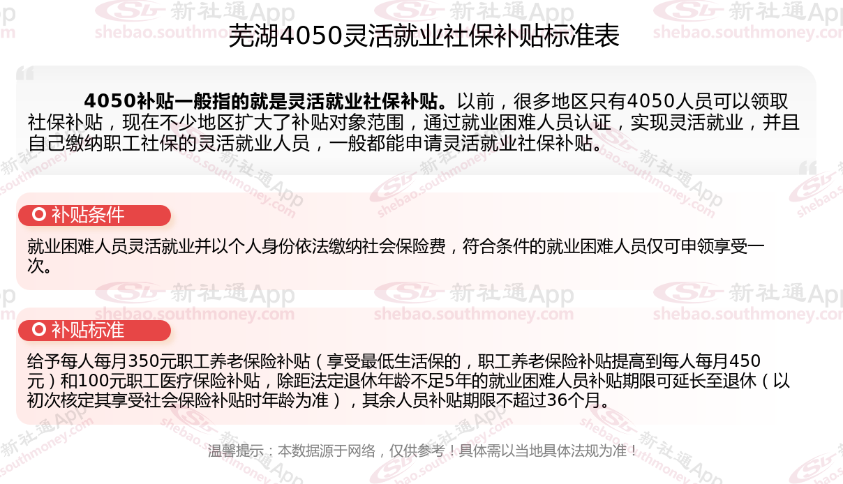 一、芜湖4050社保补贴标准及条件2025年最新消息
