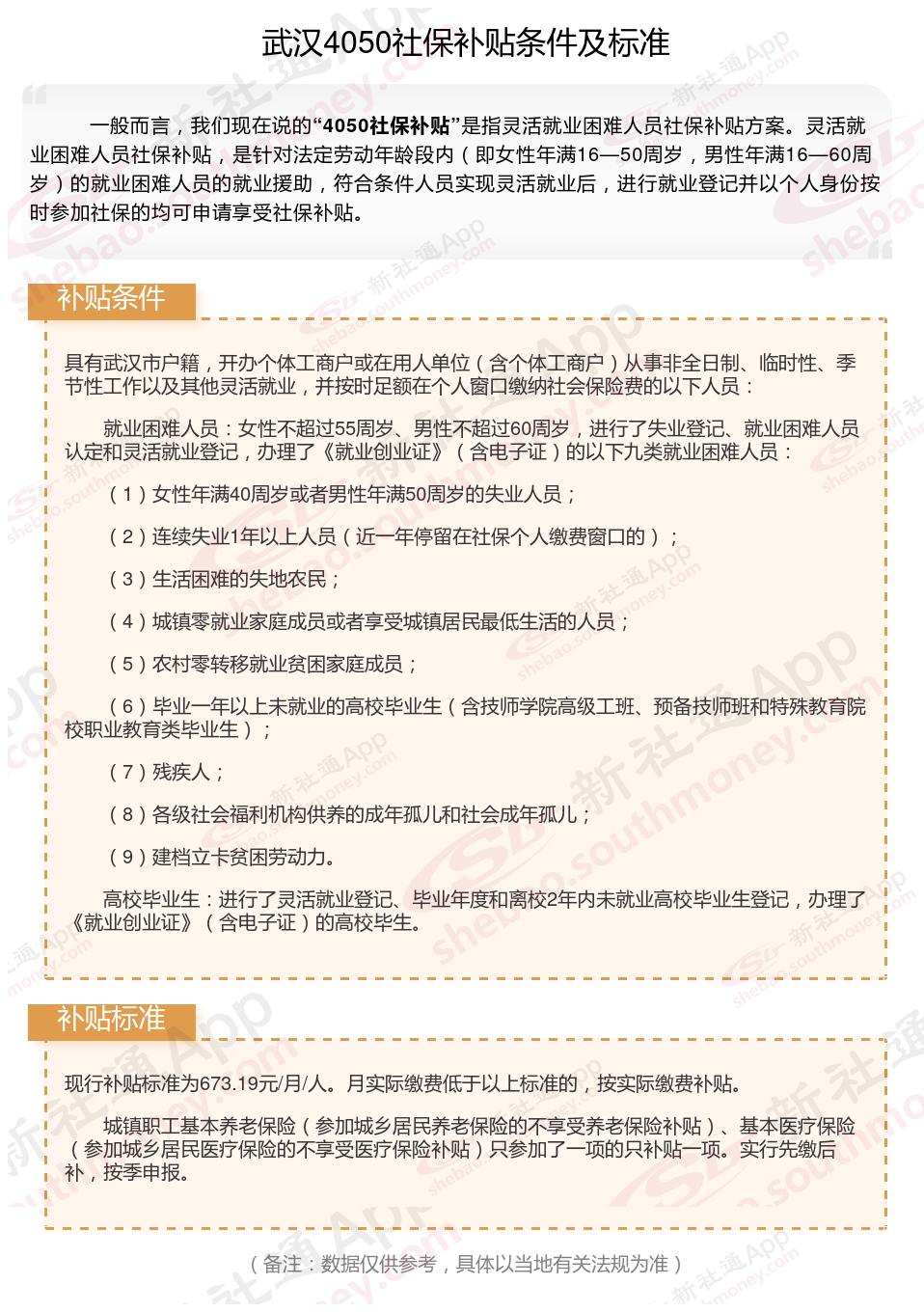 一、2025年武汉灵活就业4050社保补贴标准及条件是什么(灵活就业4050社保补贴多少钱)