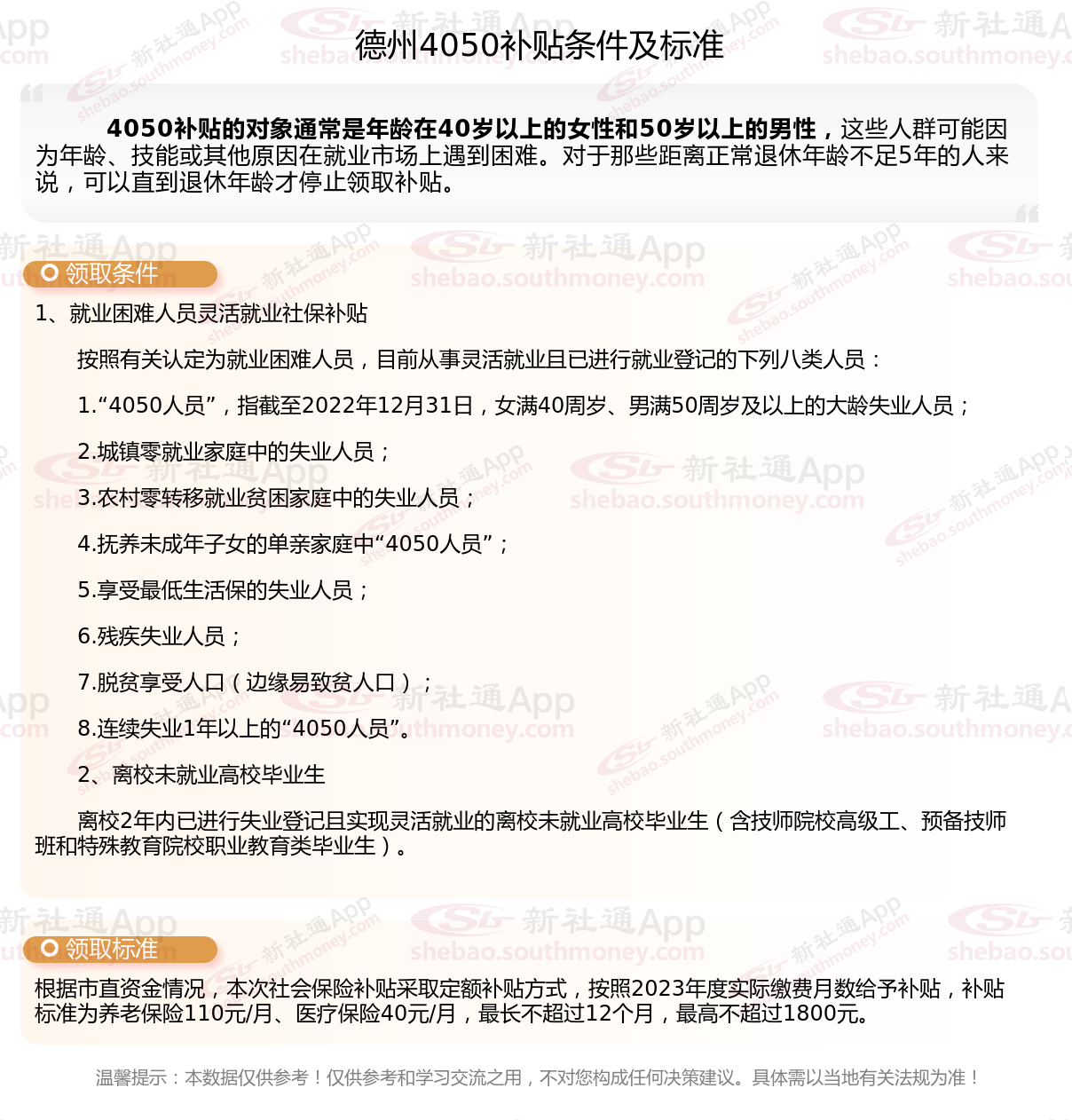 二、2025年德州4050社保补贴标准及条件,最新如下: