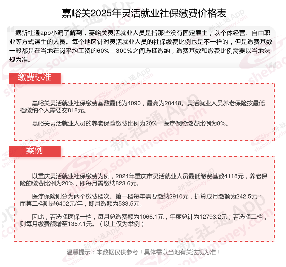 二、嘉峪关2024年灵活就业社保缴费基数、比例最新消息