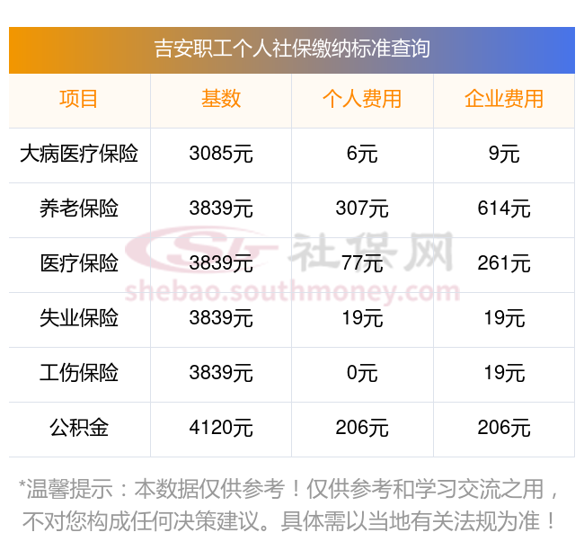 2025年吉安社保缴费价格,2025年吉安社保缴费多少钱?下表是2025年吉安社保费用明细参考,新社通app-社保缴费查询工具提供的最新数据如下: