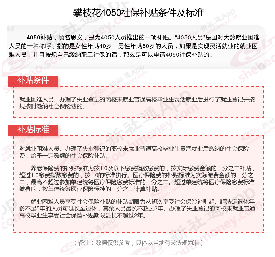 一、攀枝花4050社保补贴标准及条件2025年最新消息