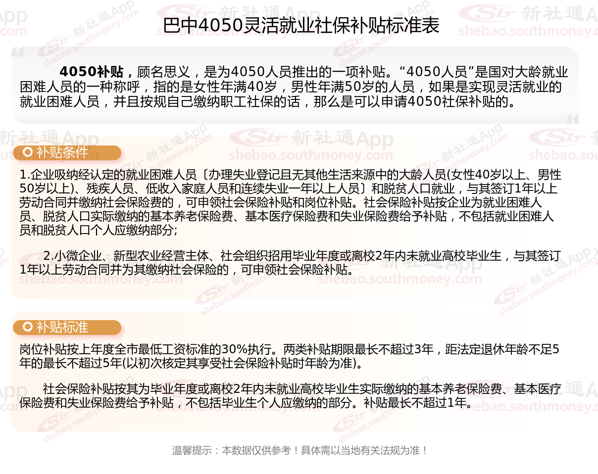 一、巴中4050社保补贴标准及条件2025年最新消息