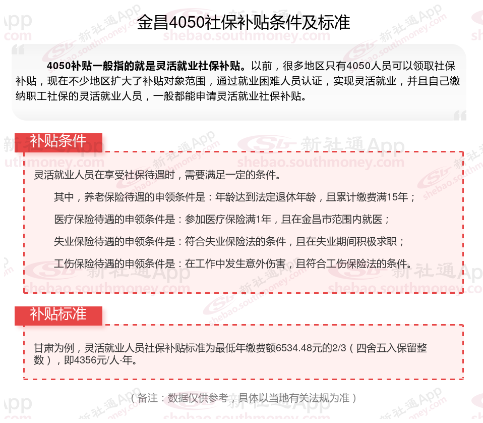 二、2025年金昌4050社保补贴标准(金昌4050灵活就业人员补贴标准是多少钱?金昌2025年4050补贴新规能领多少钱?)