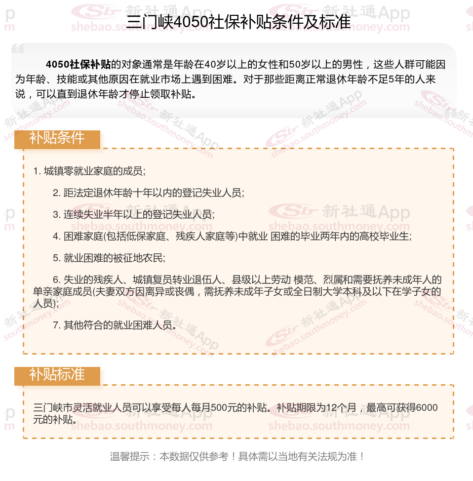 二、2025年三门峡4050社保补贴标准及条件,最新如下: