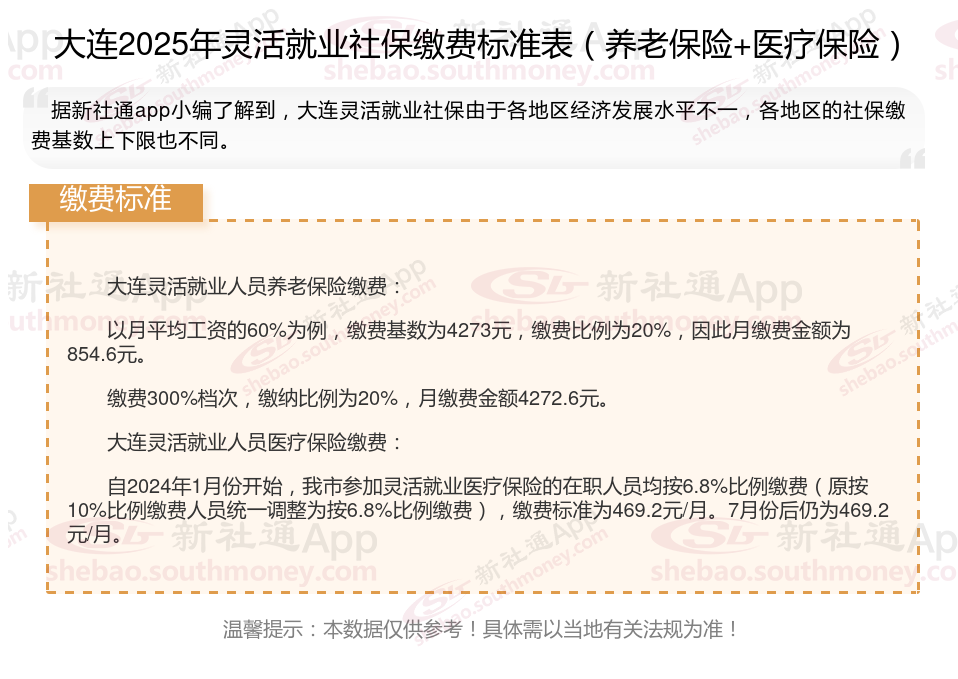 据新社通app数据显示,大连企业灵活就业养老保险的缴费基数为:4273元。