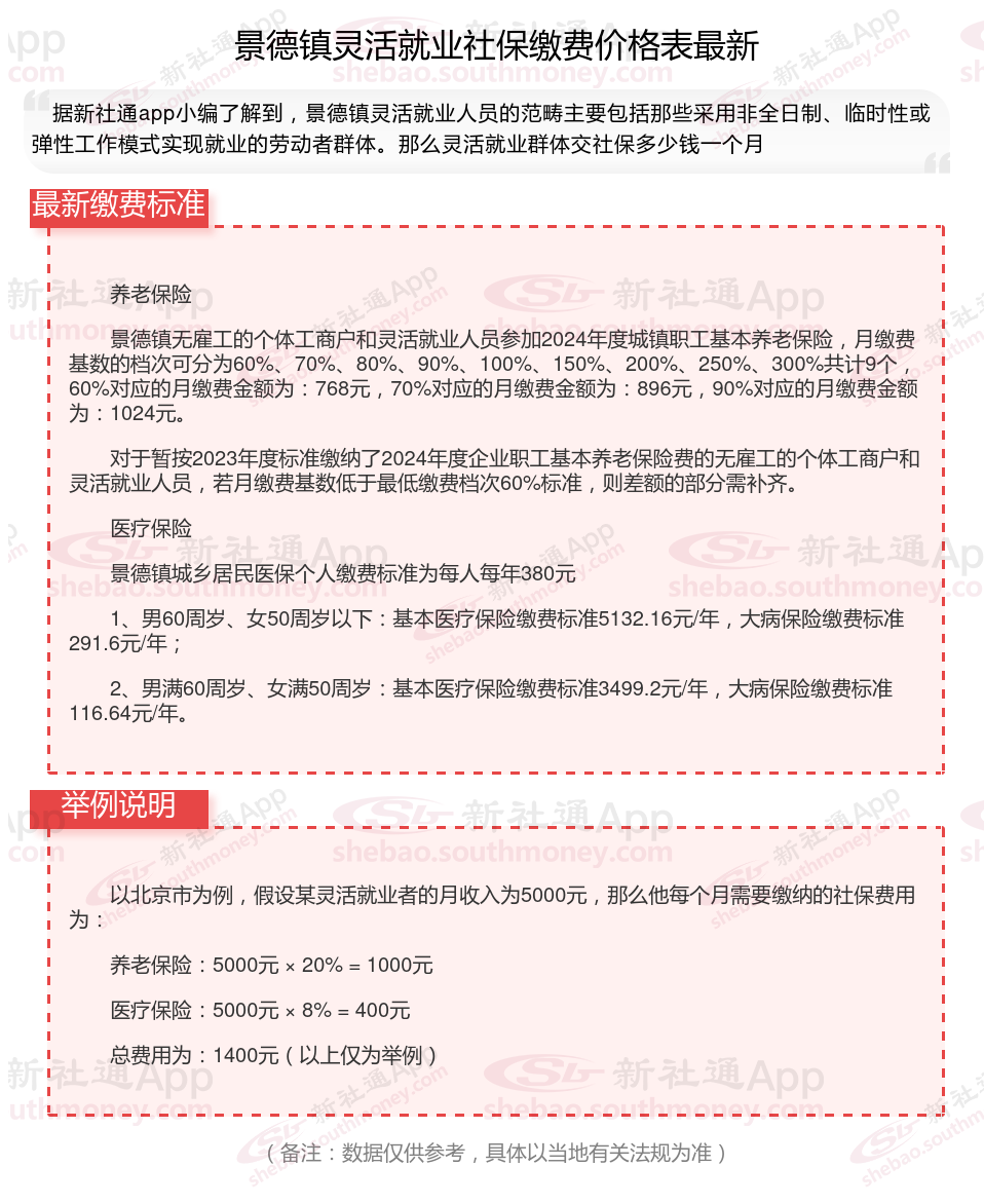 据新社通app数据显示,景德镇灵活就业人员养老保险缴费基数2024-2025年最新标准如下: