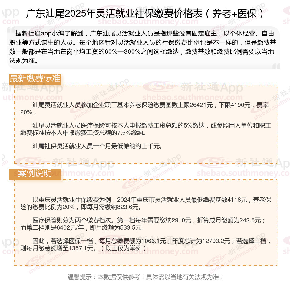 二、广东汕尾2025年灵活就业社保缴费基数及比例最新消息