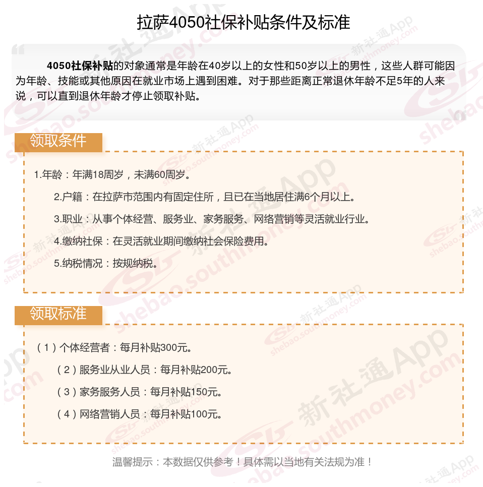 二、2025年拉萨灵活就业4050社保补贴标准及条件是什么?来了解一下