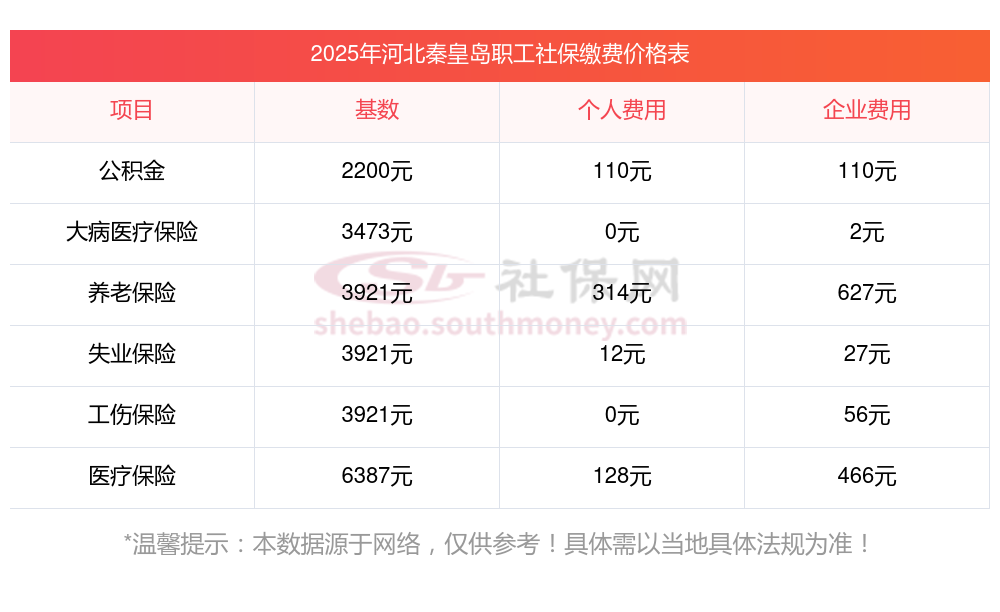 河北秦皇岛的社保缴费情况,依据2025年最新的缴费标准,我们可以详细地进行如下说明。这些标准是根据新社通app-社保缴费查询工具提供的数据整理得出的: