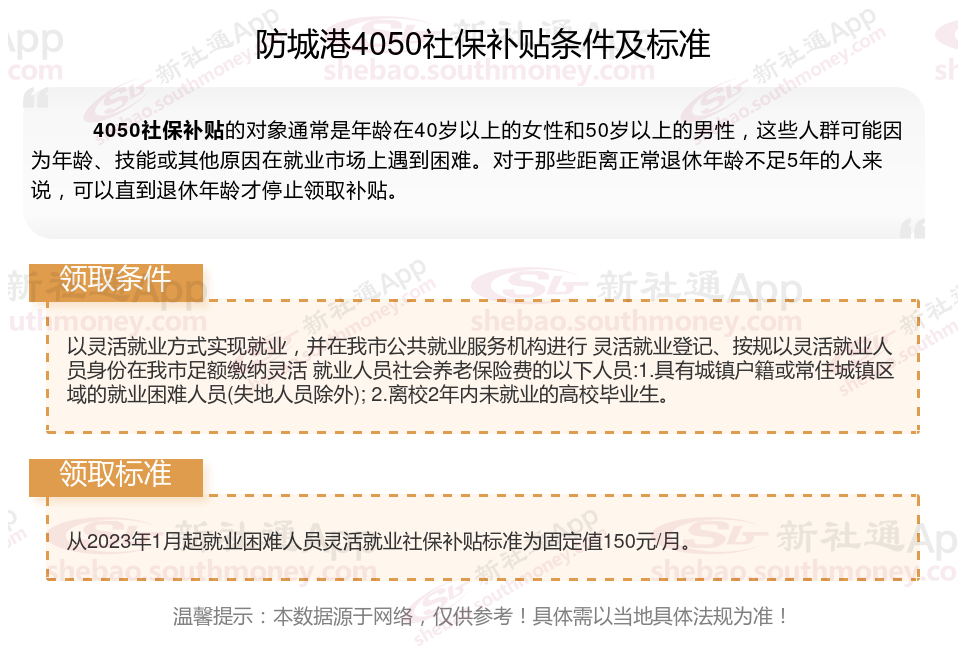 二、2025年防城港灵活就业4050社保补贴标准及条件是什么?来了解一下
