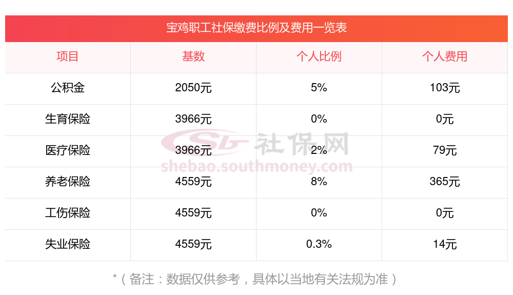 2025年宝鸡社保缴费多少钱?下表是2024-2025年宝鸡社保费用明细参考,新社通app-社保缴费查询工具提供的最新数据如下: