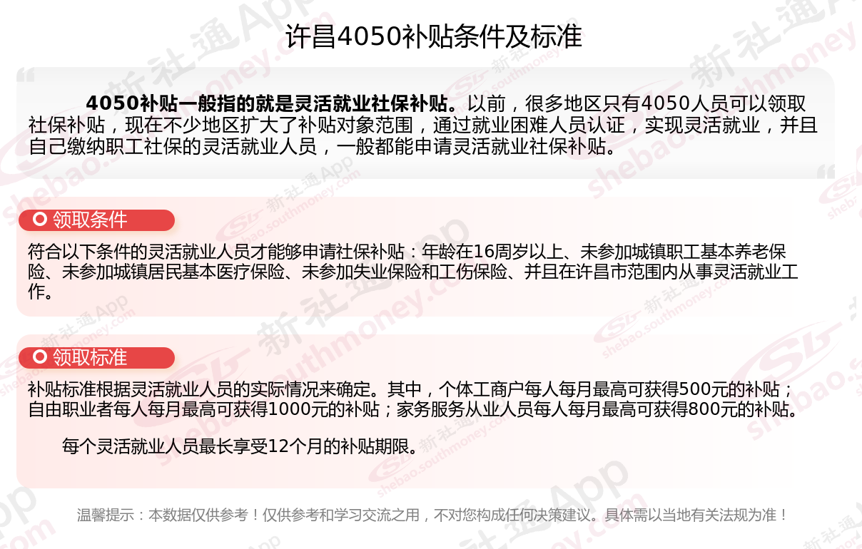 一、2025年许昌灵活就业4050社保补贴标准和条件是什么