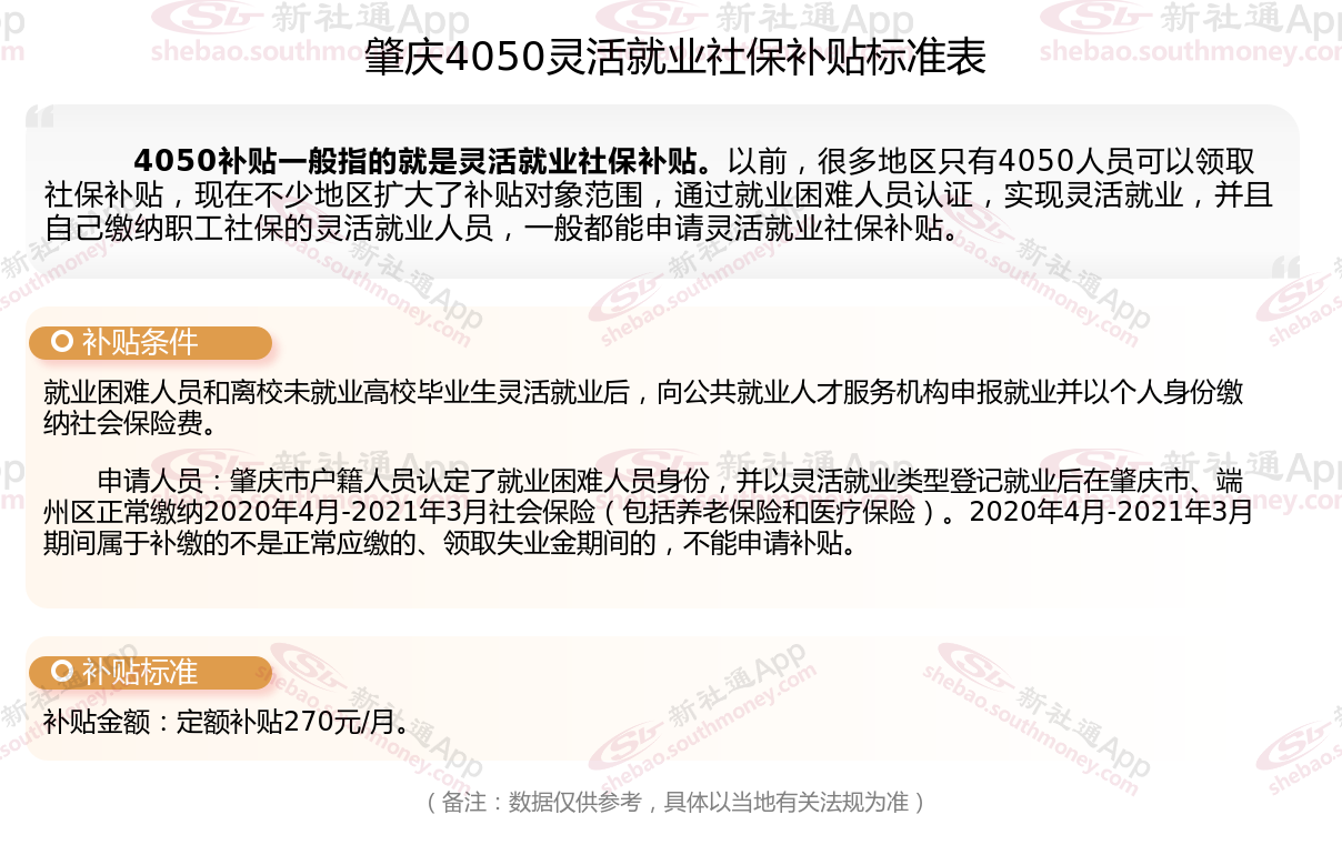一、2023-2024年肇庆4050社保补贴标准及条件,最新如下