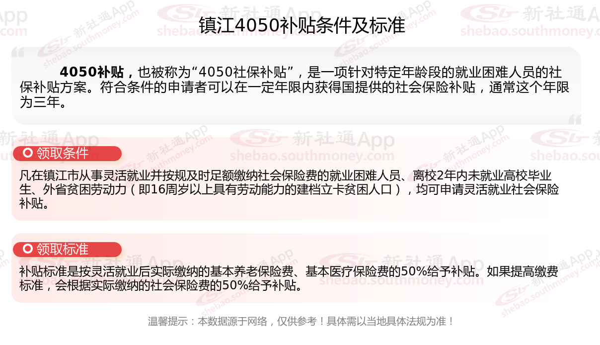 二、镇江4050社保补贴标准及条件2025年,最新如下
