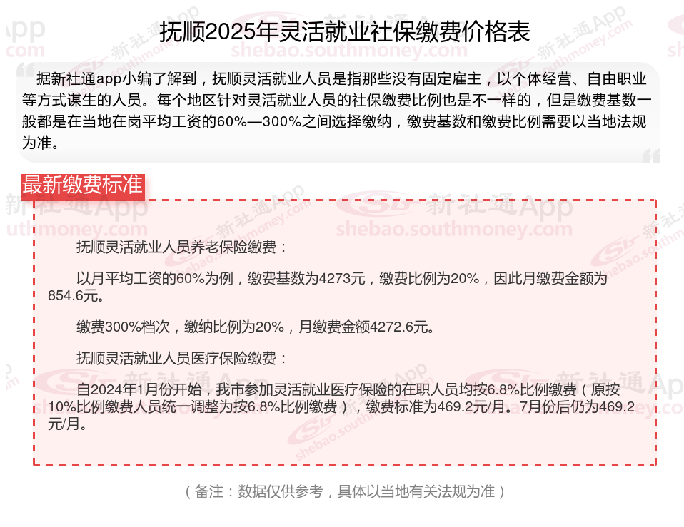 据新社通app数据显示,2024-2025年抚顺灵活就业人员养老保险的缴费标准: