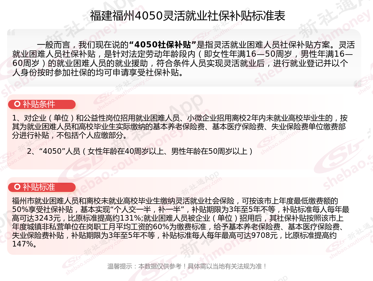 二、福建福州4050社保补贴多少钱一个月,福建福州4050社保补贴新规2025年最新标准