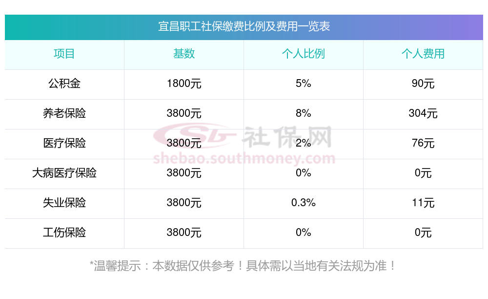 失业保险:单位缴费比例为1.5%,个人缴纳比例为0.5%。