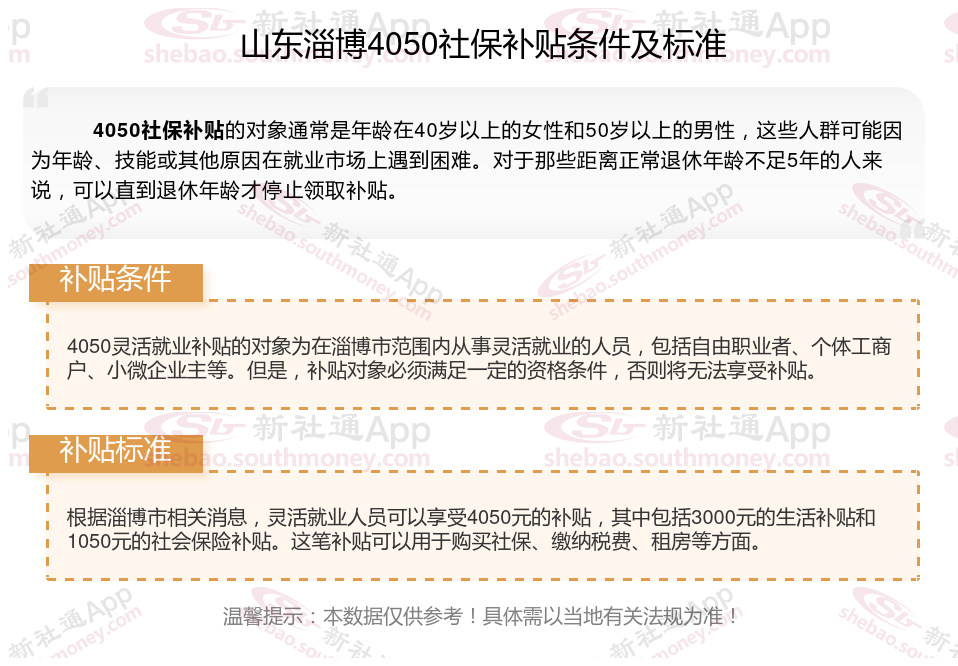 一、2023-2024年山东淄博4050社保补贴标准及条件是多少?