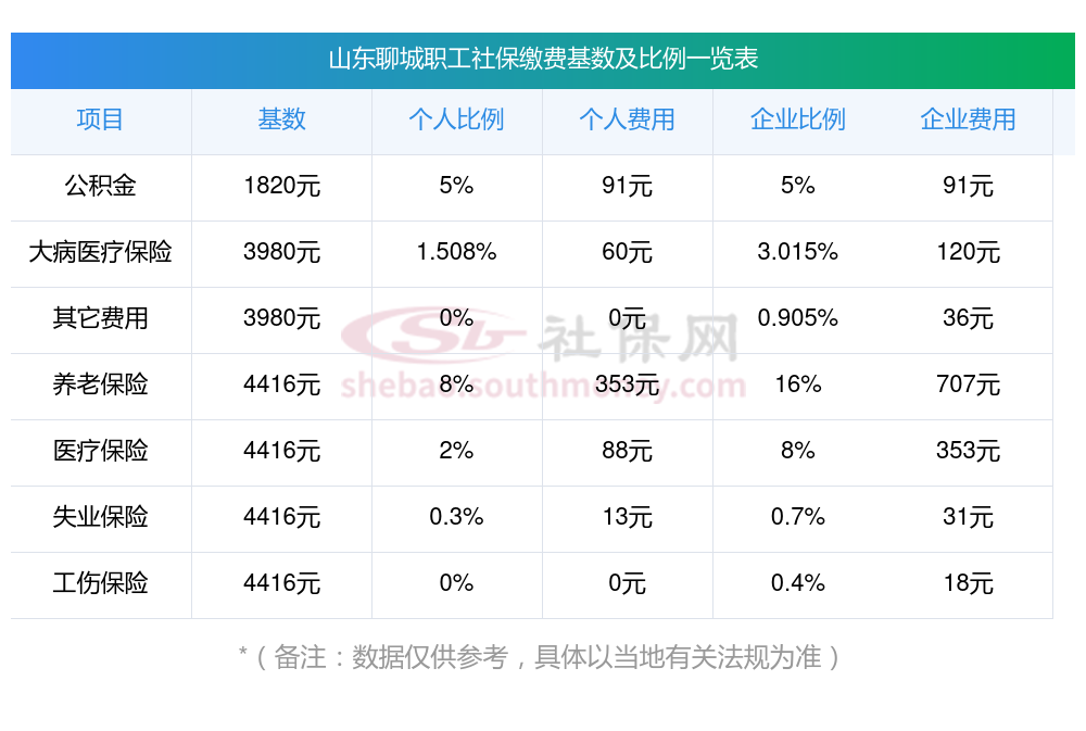 2025年山东聊城社保缴费多少钱?下表是2024-2025年山东聊城社保费用明细参考,新社通app-社保缴费查询工具提供的最新数据如下: