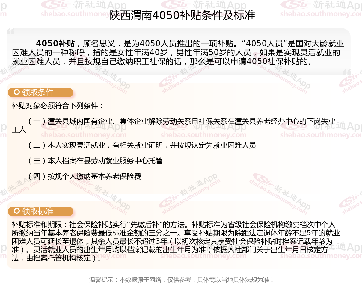 二、陕西渭南4050社保补贴标准及条件2025年最新消息