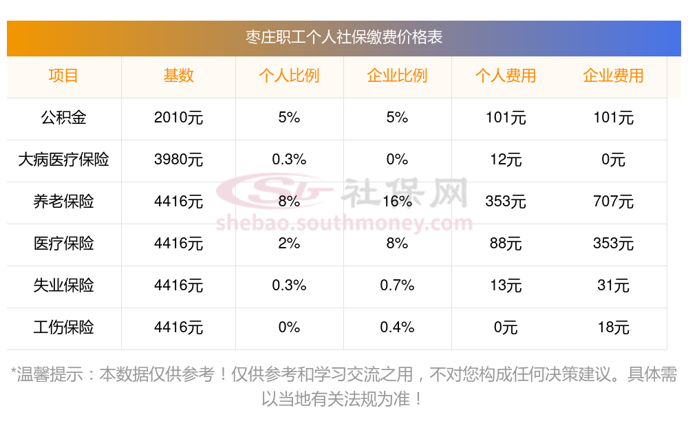 枣庄五险一金交多少钱一个月?下面和社保君一起来看看2024-2025年枣庄最低标准社保费用明细参考,新社通app-社保缴费查询工具提供的最新数据如下: