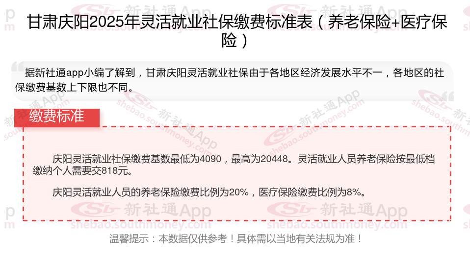 二、甘肃庆阳2025年灵活就业社保缴费基数及比例最新消息