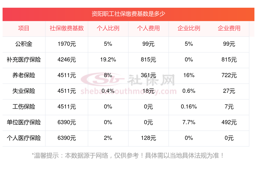 工伤保险:单位0.5%-1.6%全由单位承担,个人不缴费。