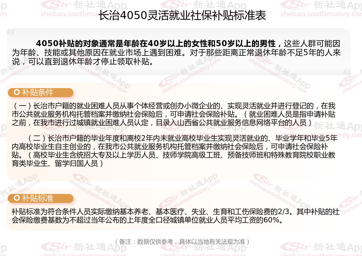 一、2023-2024年长治4050社保补贴标准及条件,最新如下