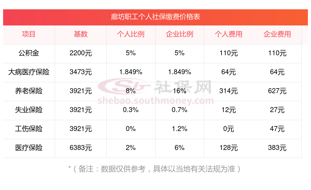 廊坊缴费社保比例一览社保公司和个人各交多少?下表是2024-2025年廊坊社保费用明细参考,新社通app-社保缴费查询工具提供的最新数据如下: