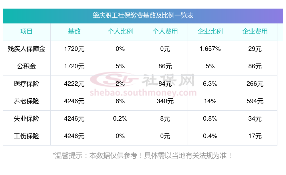 2025年肇庆社保缴费多少钱?下表是2023-2024年肇庆社保费用明细参考,新社通app-社保缴费查询工具提供的最新数据如下: