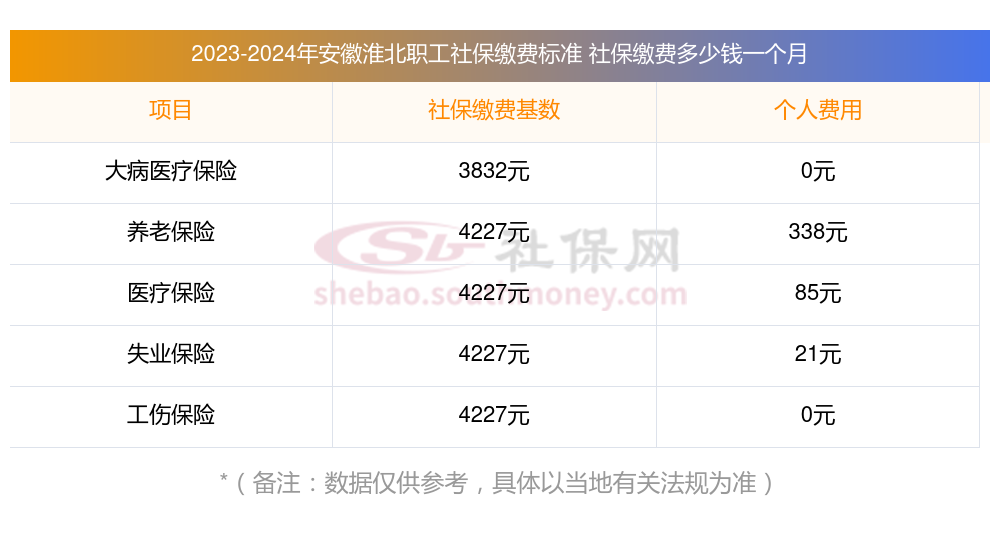 安徽淮北2025年社保养老保险缴费标准是多少?下表是2025年安徽淮北社保费用明细参考,新社通app-社保缴费查询工具提供的最新数据如下: