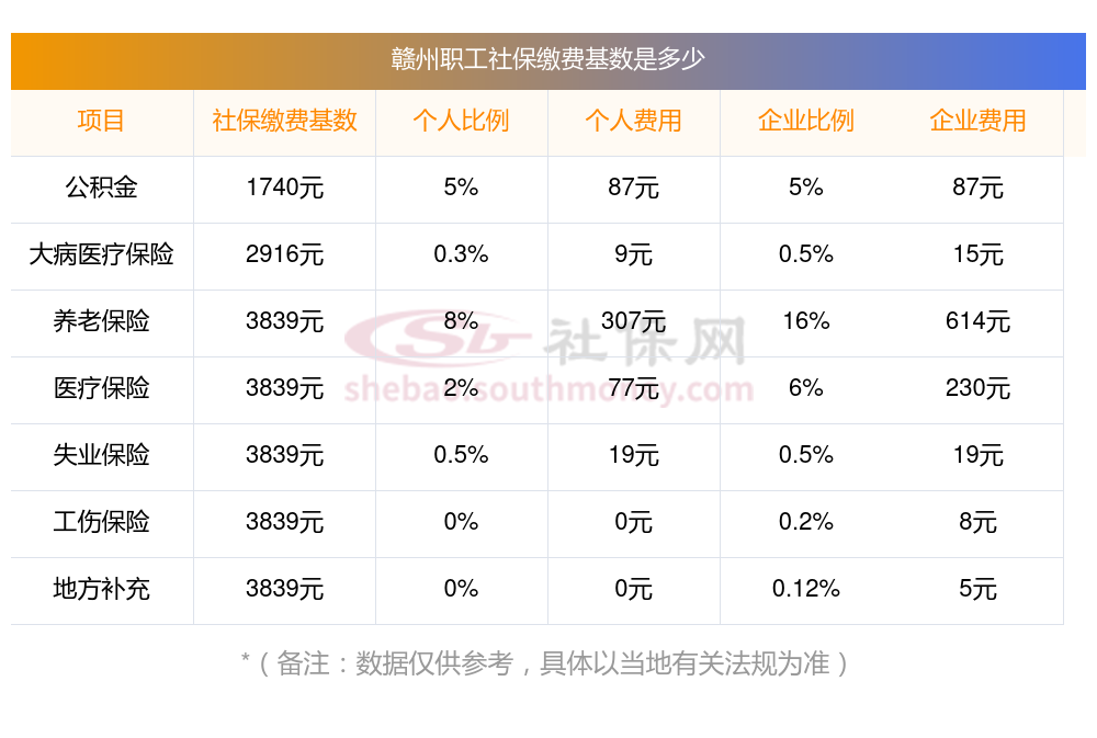 2025年赣州社保缴费价格,2025年赣州社保缴费多少钱?下表是2025年赣州社保费用明细参考,新社通app-社保缴费查询工具提供的最新数据如下: