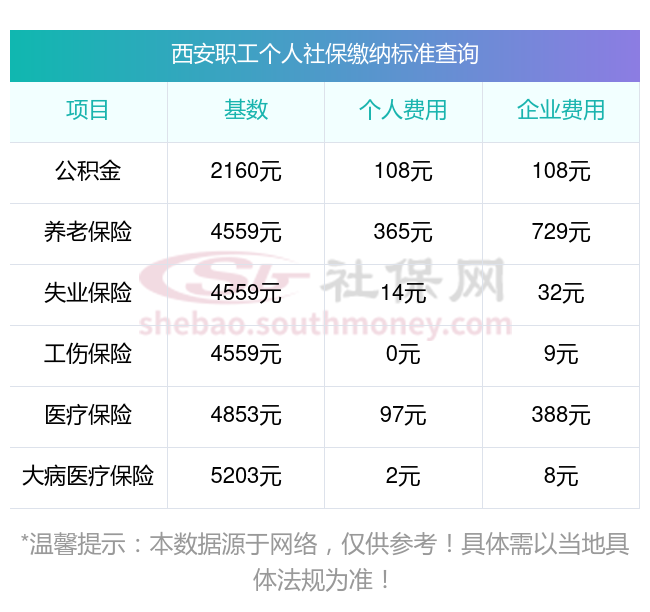2025年西安5险缴费标准是多少,2025年西安社保缴费多少钱?下表是2025年西安社保费用明细参考,新社通app-社保缴费查询工具提供的最新数据如下: